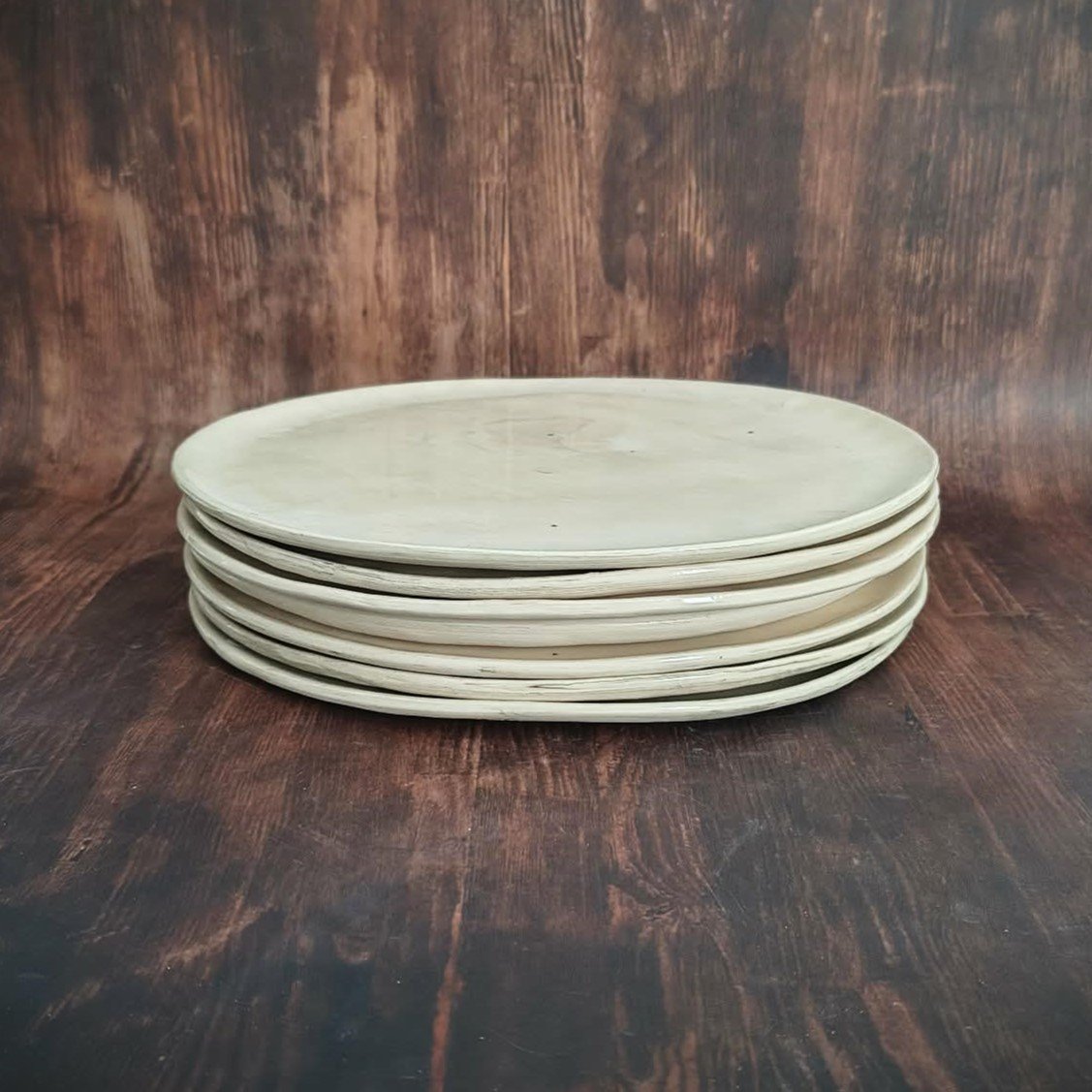 Assiette en grès marbré. Email transparent. Le dessous des assiettes est brut.