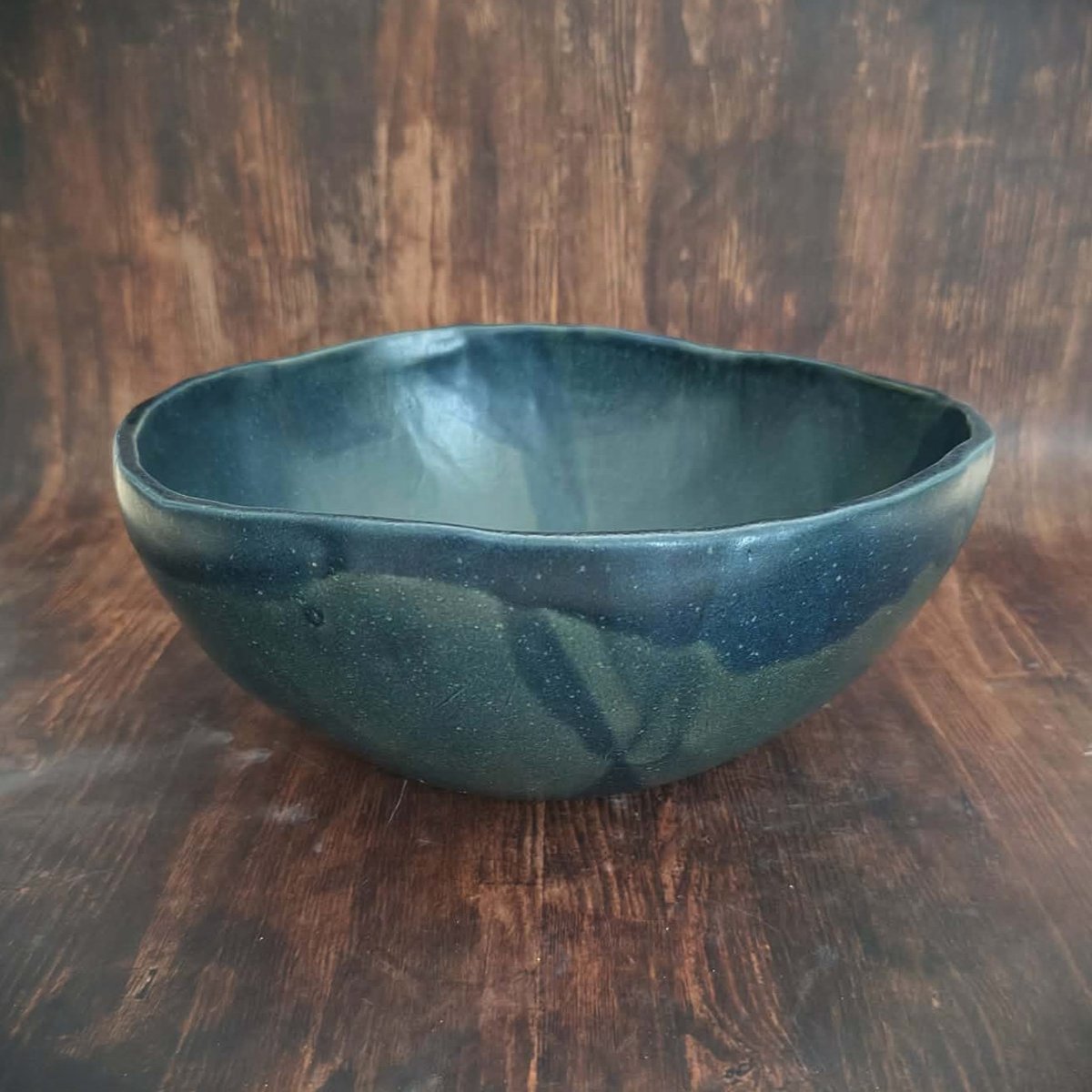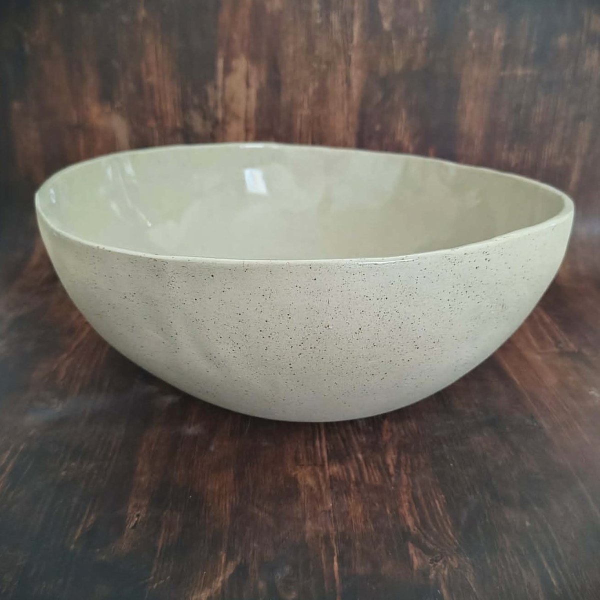 Grand format : Saladier en grès pyrité. Intérieur émaillé transparent, extérieur brut.