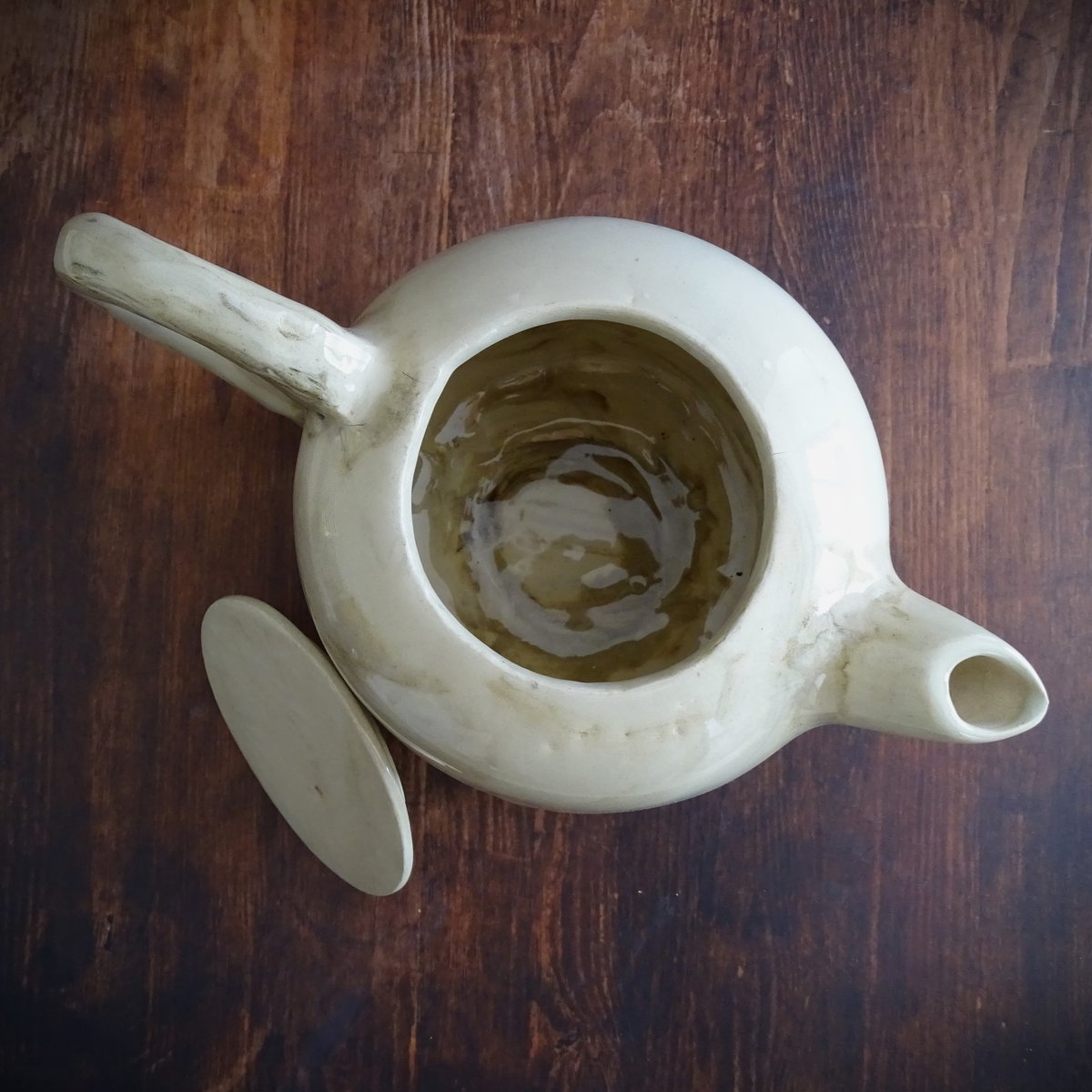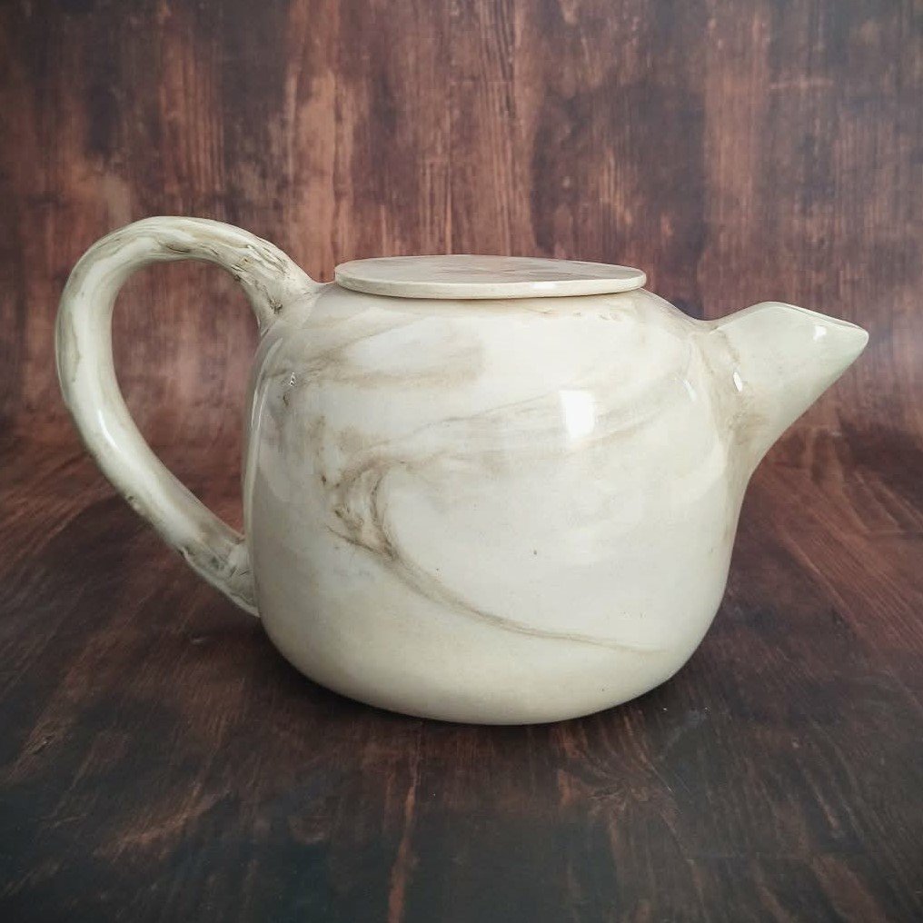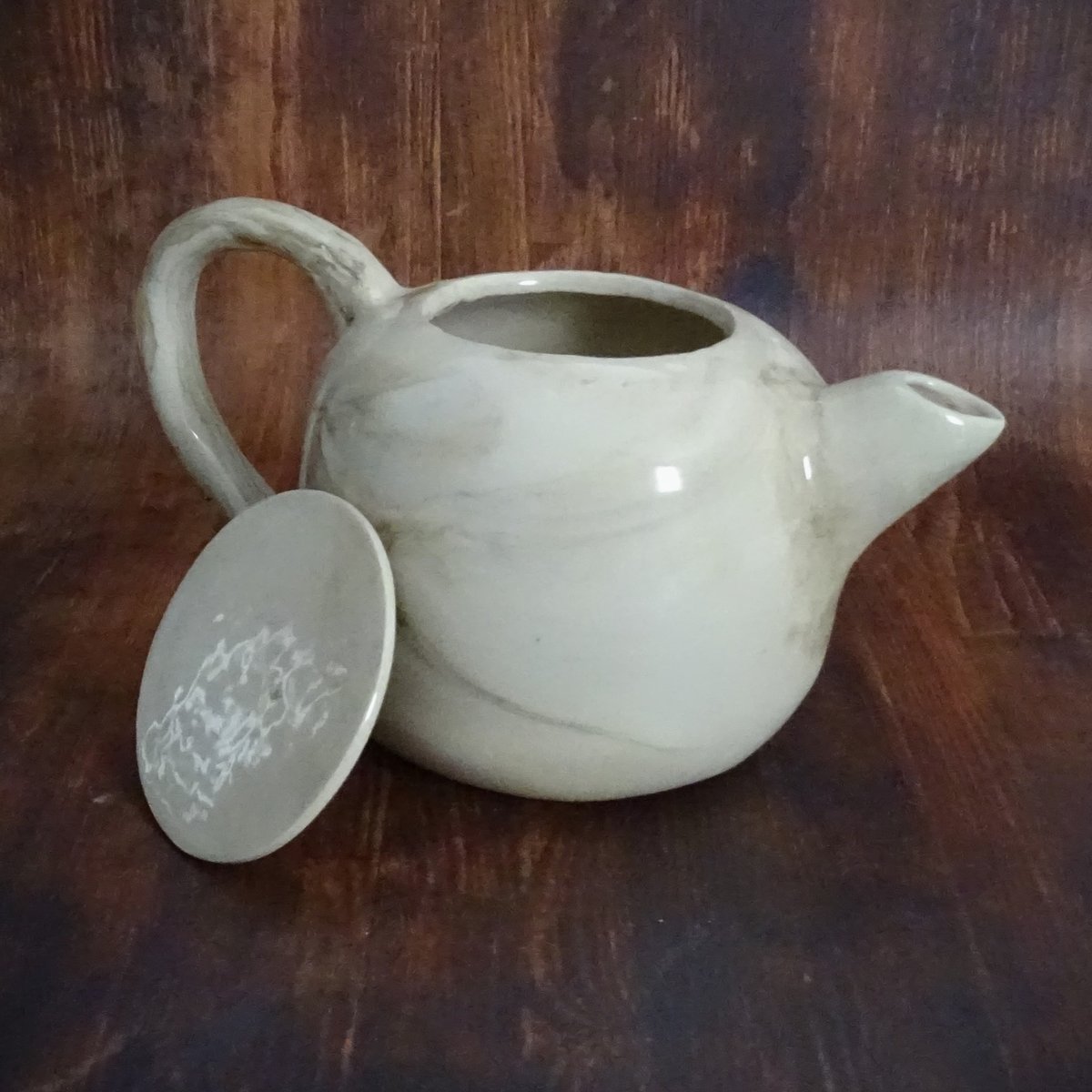 Théière en grès marbré, intérieur et extérieur émaillés.